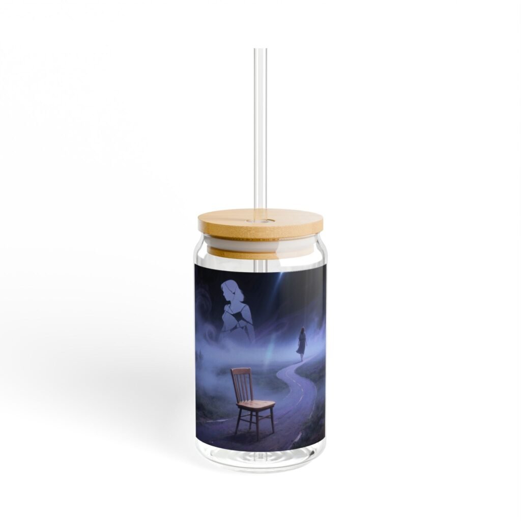 16oz Glass Sipper with Haunted Chair Moonlit Ghost Design